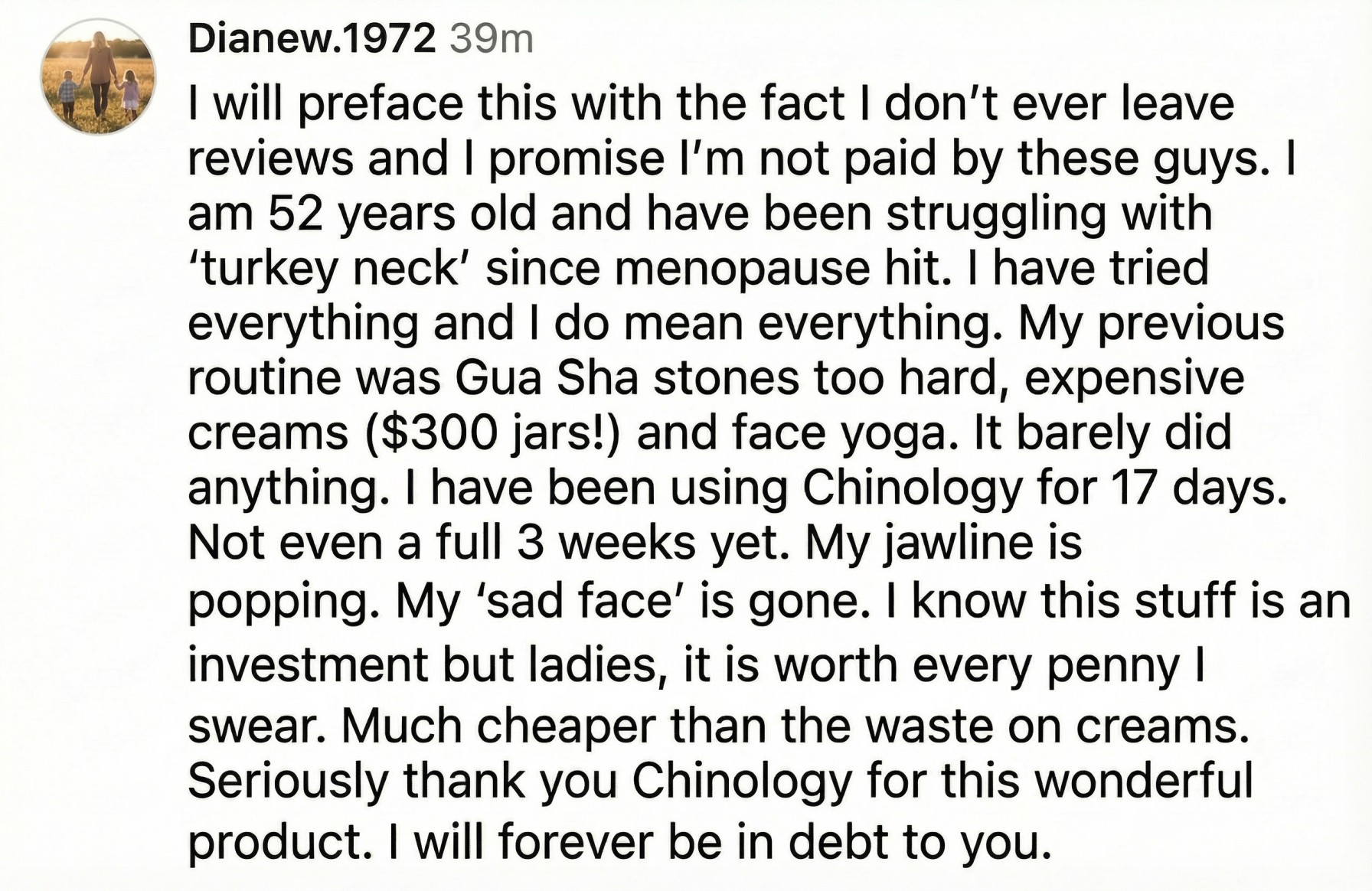 I know exactly how it feels to hide your neck in photos or avoid mirrors. I know the pain of feeling 'invisible' as you age, and the terrifying cost of surgery.